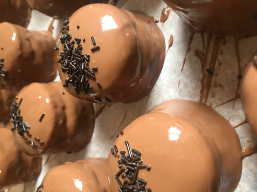 Milk and Dark chocolate shell filled with our loved brigadeiro