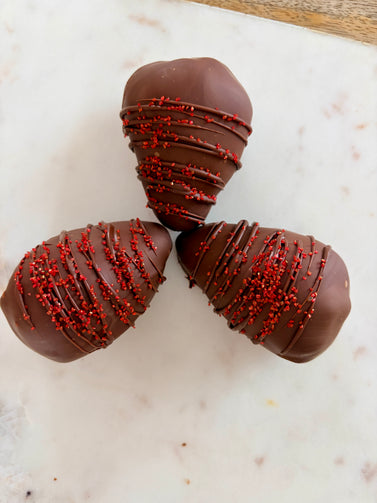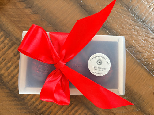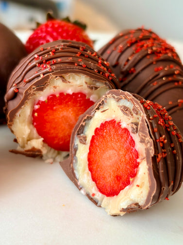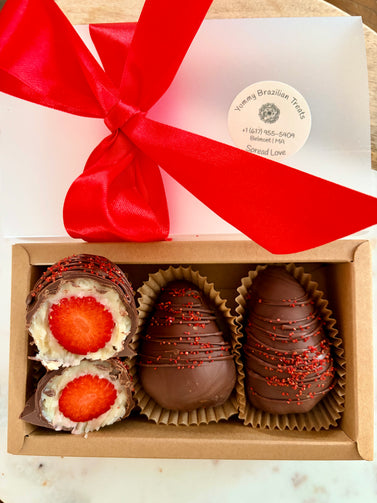 Fresh strawberry, wrapped in a smooth and delicious white brigadeiro, and coated with Belgian chocolate.