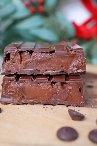 Milk and Dark chocolate shell filled with our loved brigadeiro
