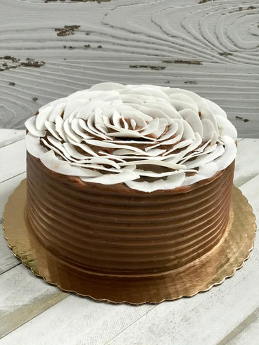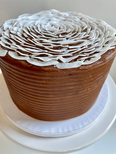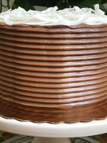 Moist and soft chocolate dough, filled with coconut brigadeiro, sided with Belgian chocolate brigadeiro.