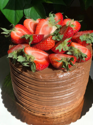 Strawberry topped Brigadeiro Cake with Chocolate Brigadeiro Siding